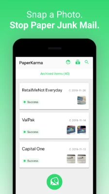 Empty your recycling bin for good(!) and stop unsolicited postal snail mail with the PaperKarma stop junk mail app.