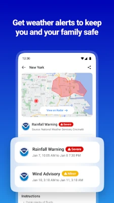 We want you to always stay in the know! Receive the latest weather alerts and warnings issued for your city by the National Weather Service (NWS), NOAA, Storm Prediction Center, Dark Sky & WDT. 1Weather's immediate notification of real-time weather changes is designed to help you & your loved ones stay safe.