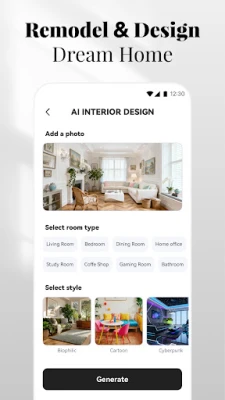 Just upload an image of your room, choose the type of space and the style you want. Our advanced AI technology will analyze your room's dimensions and characteristics, then generate a stunning interior design plan catered to your like style. From modern chic to rustic warmth, our AI interior designer presents you with a visualization of furniture arrangements, color palettes, and use this DIY interior planner and interior design tool to explore home design ideas, virtual room makeovers, kitchen renovations, living room decor.