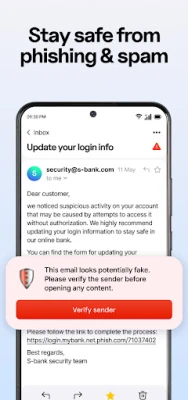 • Spam free – Built-in AI spam & phishing protection for a cleaner, quieter inbox.