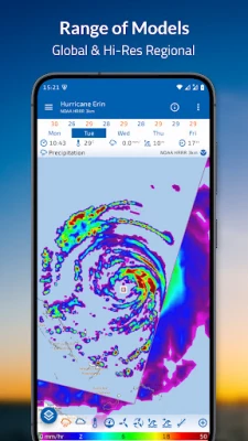 Use finger swipe to control the forecast animation over time. Choose multiple data layers to display on the map, and easily switch between models.