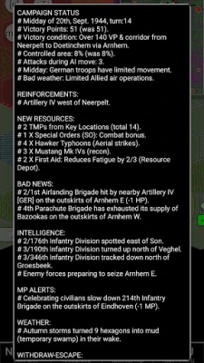 Operation Market Garden 1944 is a turn based strategy game set on the European Western Front during the later stages of the Second World War. From Joni Nuutinen: by a wargamer for the wargamers since 2011. Last updated July 2025