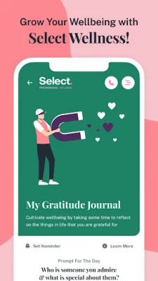 The Select Wellness app is a free companion tool for employees that are serviced by Select Wellness.
