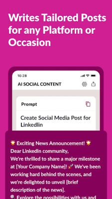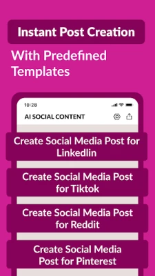 Boost your social media presence effortlessly with the AI Social Media Content Generator! Whether you need to create engaging posts for LinkedIn, Instagram, Facebook, Quora, TikTok, Twitter, Reddit, Tumblr, or Pinterest, this powerful app has you covered.
